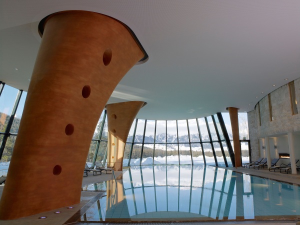 Hotelové lázně s výhledem na hory. Foto: www.kronenhof.com