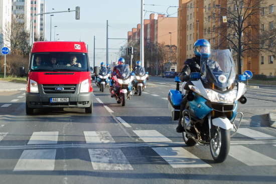 Gorilí celebrita Moja jede na letiště. "Ten doprovod k nám nepatřil, jel pro nějakého politika,