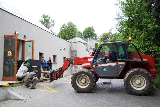 Orangutanice Upita, nakládání před cestou do Izraele. Foto: Tomáš Adamec, Zoo Praha