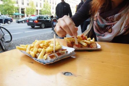 Budet se divit, co na nakrájeném buřtu, politém rajskou omáčkou a posypaném kari kořením Berlíňané vidí. Ale musíte si ho dát, je to klasika pouličního prodeje. Zaplatíte zhruba 2,5 eura. Když si objednáte i hranolky, v kiosku necháte zhruba 5 euro. Doporučujeme třeba v podniku Curry36 na ulici Mehringdamm 36 nebo na Bahnhof Zoologischer Garten.