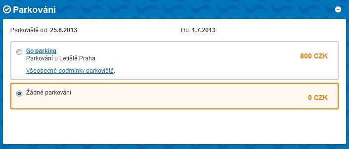 Při potvrzení rezervace letenky je součástí formuláře i možnost objednat GO PARKING.