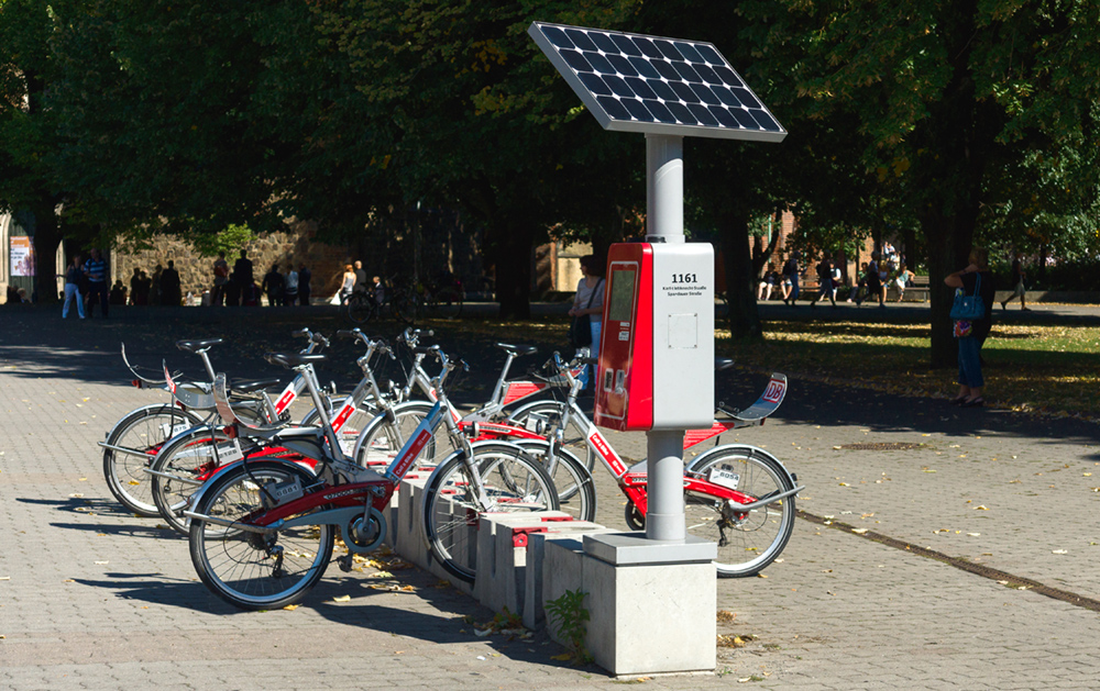 - Kola stojí všude, připoutat ho můžete k plotu, sloupu i zábradlí. Blízko stanic metra nebo S-Bahnu uvidíte stanice "Call a bike", které provozují německé dráhy Deutsche Bahn.