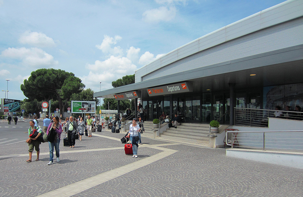 Oficiální název je Letiště Leonarda da Vinciho Řím-Fiumicino, leží asi 30 km od Říma a má terminály 1, 2, 3 a 5.