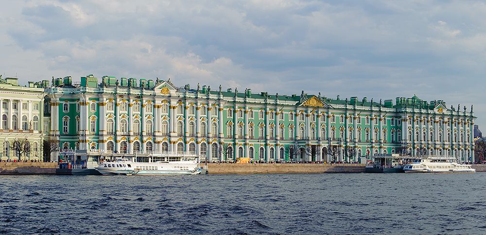 Za řekou Mojkou se před vámi otevře překrásné Palácové náměstí. Jeho levou část ohraničuje jeden z paláců Ermitáže, kdysi sídla ruských panovníků. Návštěvu této největší světové galerie si nemůžete nechat ujít. Říká se, že tu může člověk chodit po celý rok a každý den objevovat nové a nové obrazy a sochy. Díla Michelangela, Picassa, ale také Repina, Vrubela a dalších Rusů rozhodně stojí za zhlédnutí. Vstup do tohoto „bludiště“ napěchovaného uměním přijde dospělého na 400 rublů, studenti a děti mají vstup zdarma. Otevřeno je denně kromě pondělí od 10.30 do 18 hodin, ve středu navíc až do 21 hodin.