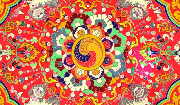 Detail vzoru z pokrývky trůnu - Konec 19. Století. Royal Textile Academy, Thimphu, Bhútán