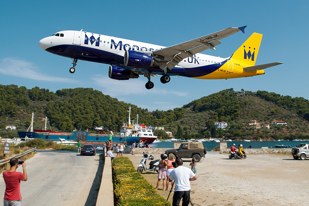 Přistání Monarch A320-214 na letišti Skiathos LGSK/JSI. Foto: Joshua Risker